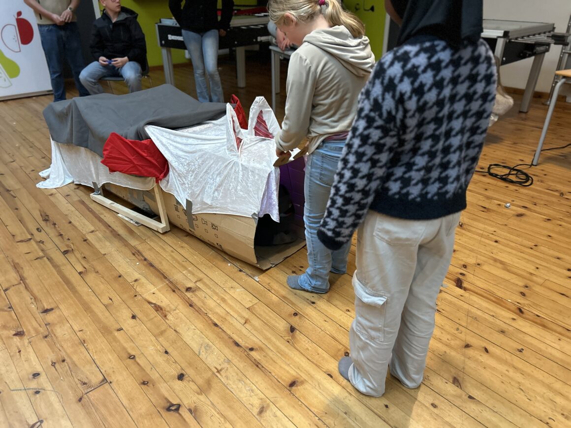 Tja hvordan lage en kjempehamster, eller sportsmaskin? Løsningen er å prøve seg fram. Denne dagen kom oppfinnerne fra 3. klasse til 9. klasse på Grim skole for å teste variantene de hadde bygd – «fail fast, fail cheap»! Testen viste fort hvilke løsninger på sportsmodellen som var gøyest. Løsning for kjempehamster er fortsatt litt åpen – skal vi lage en hule eller en hamster å krabbe gjennom?